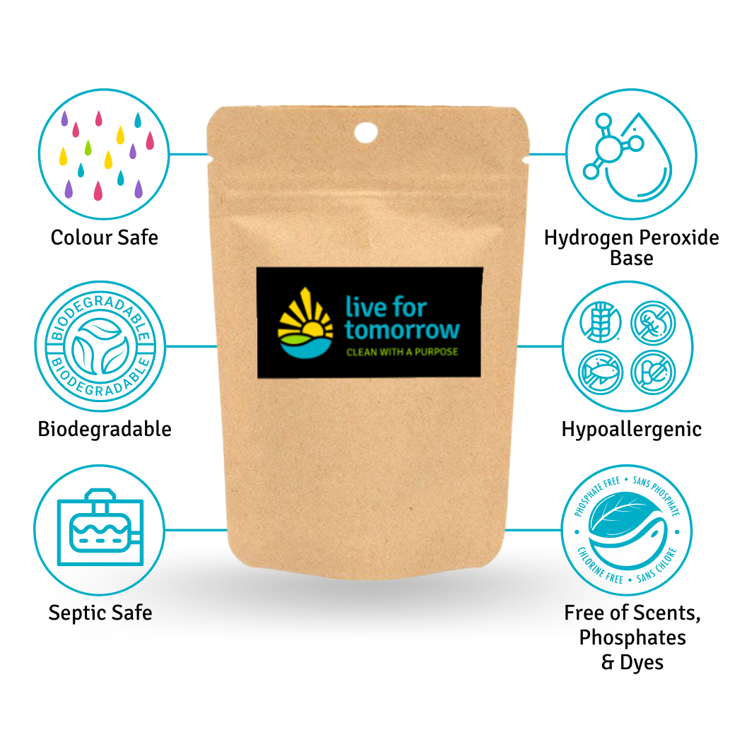 Make your laundry routine even easier and more effective with Live for Tomorrow's oxygen wash booster. Our hydrogen peroxide-based formula is designed to help lift and remove dirt from fabrics quickly and safely, leaving your clothes looking and smelling fresh with each wash. Cleaning has never been easier - try Live for Tomorrow's oxygen wash booster today!
